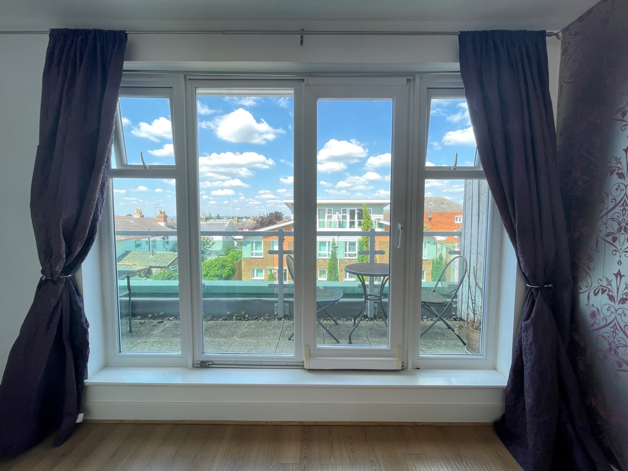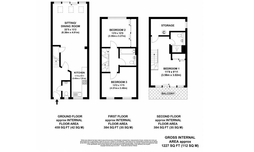 The property includes a light entrance hallway, leading to a fully fitted kitchen, and large open plan living/dining area with patio doors out to the garden. There is also the luxury of a downstairs cloakroom. The second floor includes two double bedrooms and a family bathroom. The third floor offers the master suite, with shower room and large storage area, as well as a balcony with great views across the town.