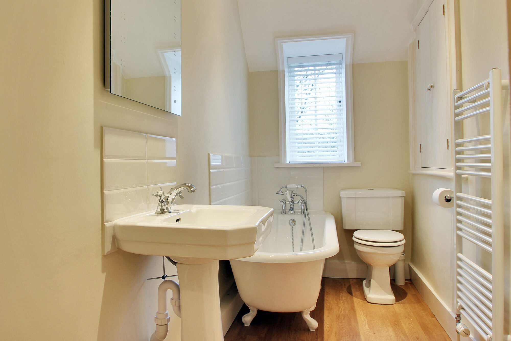 Ground floor: Entrance hall, sitting room, family room, two bedrooms, family bathroom, kitchen, cloakroom, drawing room overlooking garden and leading to Victorian conservatory. There is a terrace off the conservatory.