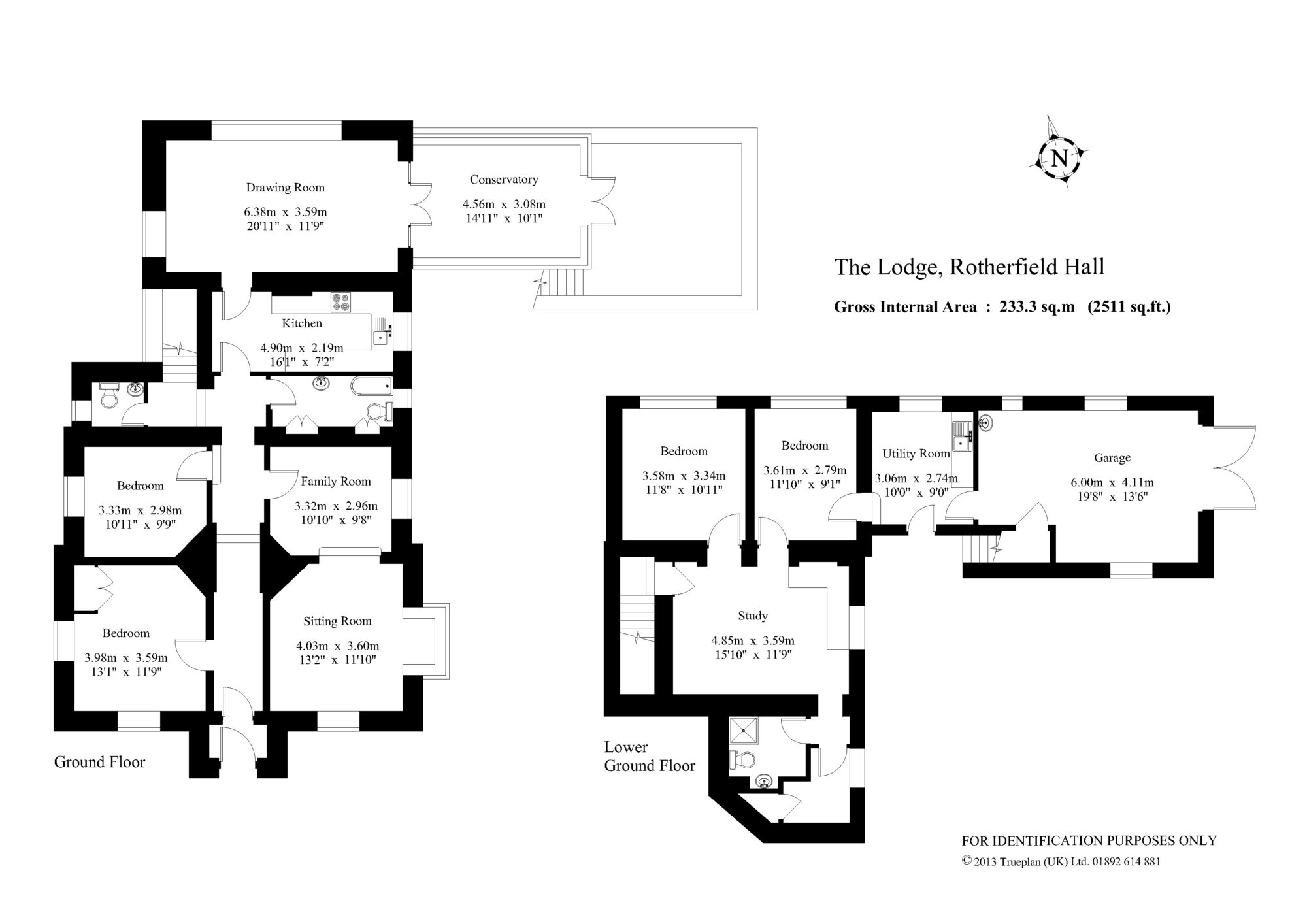 Lower ground floor: shower room, utility room, study, two further bedrooms & integral garage.