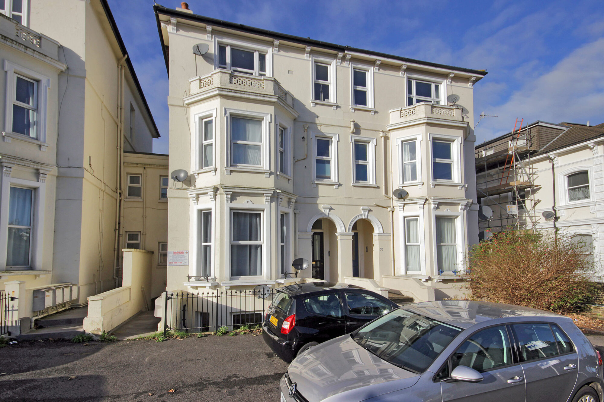 There is residents parking in the forecourt of the building.